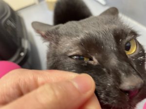 おもちゃで遊びつつも人へのスリスリを欠かさない甘えん坊なクロちゃんです。