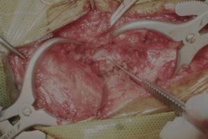 これは手術中の写真で、金属の棒で指しているのが脊髄です。